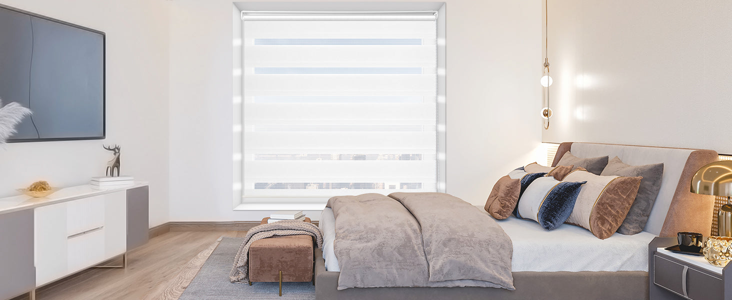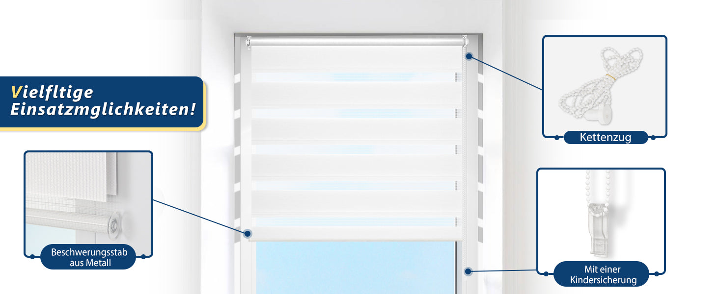 ✨ Sorgenfreie Kundenservice und Applikation:HOMEDEMO Doppelrollo Klemmfix ohne Bohren bildet eine Kombination aus Rollo 和 Jalousie für sämtliche räumlihkeiten geeignet。